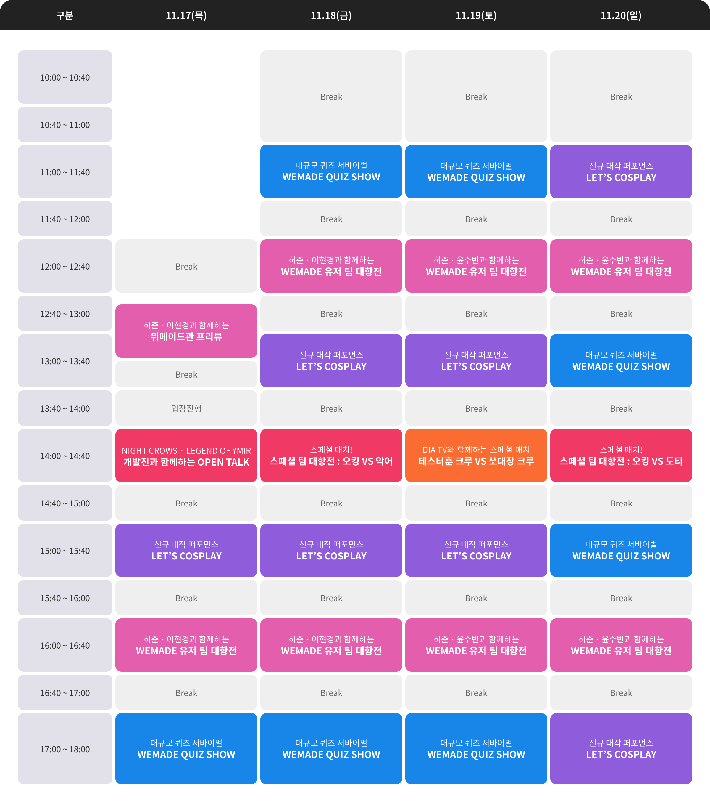 ¸ÞÀÎ ½ºÅ×ÀÌÁö¿¡¼´Â ½ÅÀÛ 2Á¾ °³¹ßÀ» ¸ÃÀº ÃѰý PDµéÀÌ Á÷Á¢ °ÔÀÓÀ» ¼Ò°³ÇÏ´Â ÇÁ·Î±×·¥ÀÌ ÁøÇàµÇ¸ç, ÀÎÇ÷ç¾ð¼ ÇãÁذú ÀÌÇö°æ, ÀÎÅÍ³Ý °³Àιæ¼ÛÀÎ '¿ÀÅ·'°ú 'Å×½ºÅÍÈÆ', 'µµÆ¼'µîÀÌ Âü¿©ÇÏ´Â ½ºÆä¼È ¸ÅÄ¡µµ ÁøÇàµÈ´Ù.