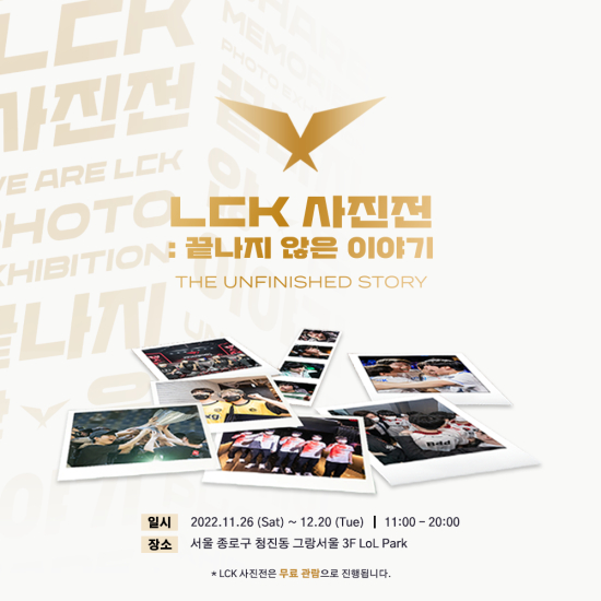 '¸®±× ¿Àºê ·¹Àüµå(LoL)' e½ºÆ÷Ã÷ÀÇ Çѱ¹ ÇÁ·Î ¸®±×¸¦ ÁÖÃÖÇÏ´Â ¸®±× ¿Àºê ·¹Àüµå èÇǾ𽺠ÄÚ¸®¾Æ(ÀÌÇÏ 'LCK')´Â 11¿ù 26ÀÏ(Åä)ºÎÅÍ 12¿ù 20ÀÏ(È)±îÁö ¼¿ï Á¾·Î±¸¿¡ À§Ä¡ÇÑ ·ÑÆÄÅ©¿¡¼ 'LCK »çÁøÀü : ³¡³ªÁö ¾ÊÀº À̾߱â'¸¦ °³ÃÖÇÑ´Ù.