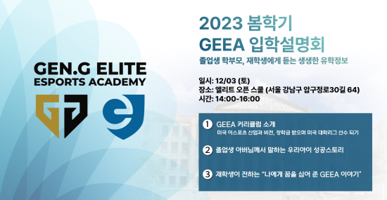 ±Û·Î¹ú À̽ºÆ÷Ã÷ ±â¾÷ Á¨Áö À̽ºÆ÷Ã÷(Gen.G Esports, ÀÌÇÏ Á¨Áö)°¡ 12¿ù 3ÀÏ(Åä) ±¹³» Çлý ¹× Çкθð ´ë»óÀ¸·Î 2023³â º½Çб⠽ÅÀÔ»ý ¸ðÁýÀ» À§ÇÑ ¡®Á¨Áö ¿¤¸®Æ® À̽ºÆ÷Ã÷ ¾ÆÄ«µ¥¹Ì(Gen.G Elite Esports Academy, ÀÌÇÏ GEEA)¡¯ ÀÔÇÐ ¼³¸íȸ¸¦ ÁøÇàÇÑ´Ù°í 28ÀÏ ¹àÇû´Ù.