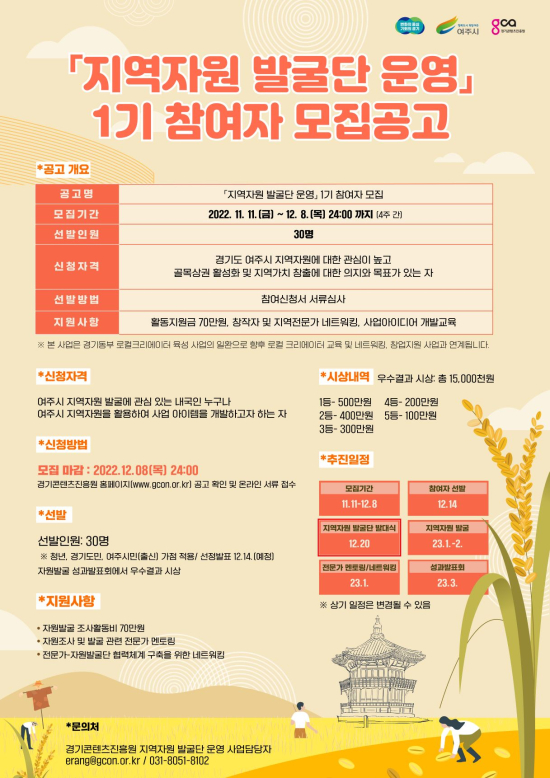 °æ±âÄÜÅÙÃ÷ÁøÈï¿ø(ÀÌÇÏ °æÄÜÁø)Àº ·ÎÄà ũ¸®¿¡ÀÌÅÍ À°¼ºÀ» À§ÇÑ µ¿ºÎ °æ±â¹®ÈâÁ¶ÇãºêÀÇ ¡®Áö¿ªÀÚ¿ø ¹ß±¼´Ü 1±â¡¯ Âü¿©ÀÚ 30¸íÀ» ¿À´Â 12¿ù 8ÀϱîÁö ¸ðÁýÇÑ´Ù.