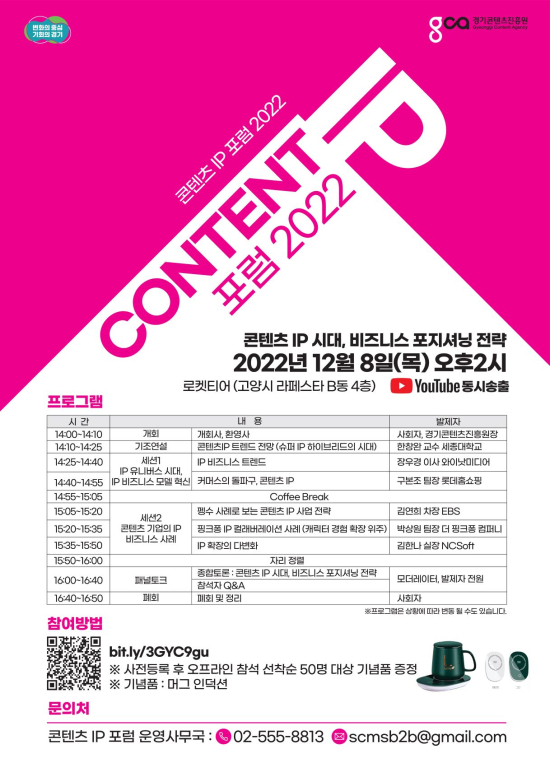 °æ±âÄÜÅÙÃ÷ÁøÈï¿ø(ÀÌÇÏ °æÄÜÁø)ÀÌ ¡®ÄÜÅÙÃ÷ IP Æ÷·³ 2022¡¯¸¦ ¿À´Â 12¿ù 8ÀÏ ¿ÀÈÄ 2½Ã °í¾ç½Ã ¶óÆä½ºÅ¸ Bµ¿¿¡ À§Ä¡ÇÑ ·ÎÄÏÆ¼¾î¿¡¼ °³ÃÖÇÑ´Ù.
