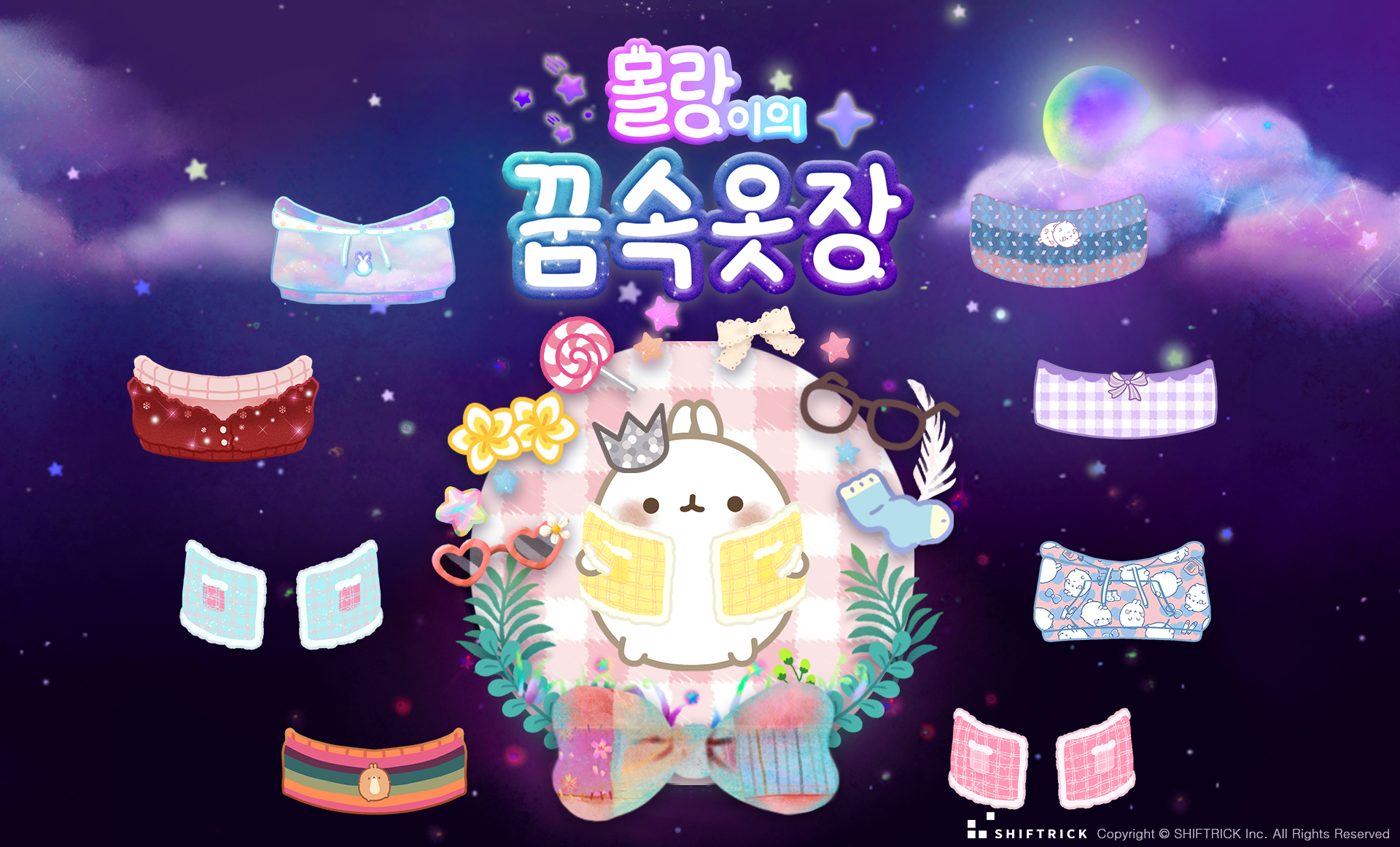¡®¸ô¶ûÀÌÀÇ ²Þ¼Ó ¿ÊÀ塯Àº Àü ¼¼°è 190 °³±¹¿¡ ¾Ö´Ï¸ÞÀ̼ÇÀ¸·Î ¼öÃâµÈ ±¹»ê ij¸¯ÅÍ IP ÀÎ ¡®¸ô¶ûÀÌ(Molang)'¸¦ ¸ð¹ÙÀÏ °ÔÀÓÈÇÑ ÇÁ·ÎÁ§Æ®·Î ÄÚµð ½Ã¹Ä·¹ÀÌ¼Ç À帣¿¡ ÆÛÁñ À帣°¡ °áÇÕµÈ ½ºÅ丮 ÁøÇàÇü °ÔÀÓÀÌ´Ù.