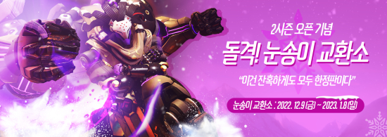 ¿À¹ö¿öÄ¡ 2(Overwatch¢ç 2)´Â °ÔÀÓÀ» Ç÷¹ÀÌ ÇÒ ¶§¸¶´Ù ÀÚµ¿ Àû¸³µÇ´Â ´«¼ÛÀÌ(Æ÷ÀÎÆ®)·Î ´Ù¾çÇÑ °æÇ°¿¡ ÀÀ¸ðÇÏ´Â ¡®µ¹°Ý, ´«¼ÛÀÌ ±³È¯¼Ò¡¯ À̺¥Æ®¸¦ ¿À´ÃºÎÅÍ ³»³â 1¿ù 8ÀÏ(ÀÏ)±îÁö ÁøÇàÇÑ´Ù.