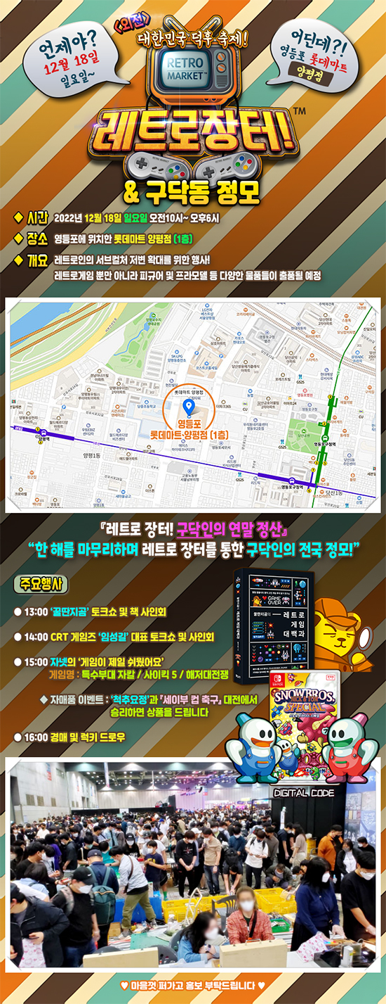 À̹ø ¡®·¹Æ®·Î ÀåÅÍ ¿ÜÀü – ¿¬¸»Á¤»ê¡¯ Çà»ç°¡ ¿¸®´Â ·Ôµ¥¸¶Æ® ¾çÆòÁ¡Àº ÁöÇÏö 5È£¼± ¾çÆò¿ª°ú ÁöÇÏö 2-5È£¼± ¿µµîÆ÷±¸Ã»¿ª »çÀÌ¿¡ À§Ä¡Çϰí ÀÖÀ¸¸ç, Çà»ç´Â ÀÚÀ¯ ¹«·á ÀÔÀåÀ¸·Î 10½ÃºÎÅÍ ÃâÀÔÇÒ ¼ö ÀÖ´Ù.