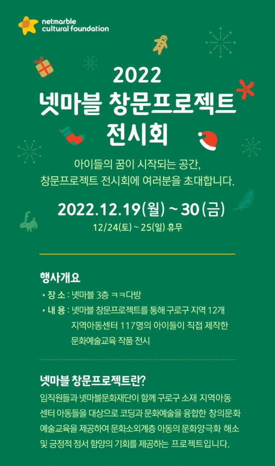³Ý¸¶ºí¹®ÈÀç´ÜÀº ³Ý¸¶ºí º»»ç ÁöŸ¿ö¿¡¼ <2022 ³Ý¸¶ºí â¹®ÇÁ·ÎÁ§Æ® Àü½Ãȸ>¸¦ °³ÃÖÇÑ´Ù°í 19ÀÏ ¹àÇû´Ù.
