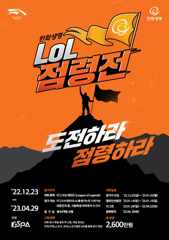 »ç´Ü¹ýÀÎ Çѱ¹e½ºÆ÷Ã÷Çùȸ°¡ ÇÑÈ»ý¸íe½ºÆ÷Ã÷(Hanwha Life Esports)¿Í ÇÔ²² e½ºÆ÷Ã÷ »ê¾÷ÀÇ È°¼ºÈ¿Í »õ·Î¿î ¾Æ¸¶Ãß¾î e½ºÆ÷Ã÷ ¹®È âÃâÀ» À§ÇØ ¸®±× ¿Àºê ·¹Àüµå(ÀÌÇÏ LoL) ¾Æ¸¶Ãß¾î ´ëȸ¸¦ °³ÃÖÇÑ´Ù°í 22ÀÏ(¸ñ) ¹ßÇ¥Çß´Ù.