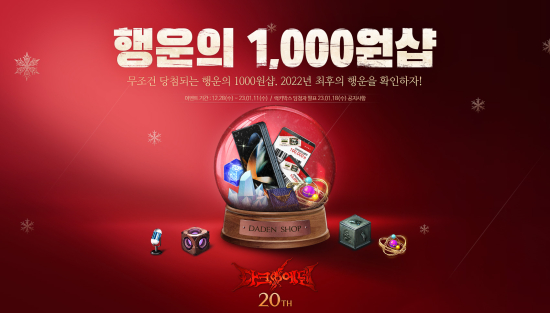 ¼ÒÇÁÅæ¿£ÅÍÅ×ÀÎ¸ÕÆ® ´Â ÀÚ»ç È£·¯ ¾×¼Ç MMORPG ¡®´ÙÅ©¿¡µ§¡¯¿¡¼ 12¿ù 28ÀϺÎÅÍ Çà¿îÀÇ 1,000¿ø¼¥ À̺¥Æ®¸¦ ½ÃÀÛ ÇÑ´Ù°í Àü°ÝÀûÀ¸·Î ¹àÇû´Ù.