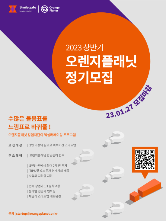 ¸ðÁý ´ë»óÀº 2ÀÎ ÀÌ»óÀÇ ½ºÅ¸Æ®¾÷À¸·Î, Áö¿øÀ» Èñ¸ÁÇÏ´Â ½ºÅ¸Æ®¾÷Àº ¿À´Â 1¿ù 27ÀÏ(±Ý) 17½Ã±îÁö ¿Â¶óÀÎÀ¸·Î Á¢¼öÇÏ¸é µÈ´Ù. Á¤±â¸ðÁý¿¡ ´ëÇÑ ÀÚ¼¼ÇÑ ³»¿ëÀº ¿À·»ÁöÇ÷¡´Ö ȨÆäÀÌÁö¿¡¼ È®ÀÎÇÒ ¼ö ÀÖ´Ù.