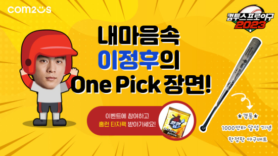 ÀÌ¿¡ ¡®ÄÄÇÁ¾ß2023¡¯Àº ÀÌÁ¤ÈÄ ¼±¼öÀÇ °ø¾à ´Þ¼ºÀ» ±â³äÇϴ Ưº° À̺¥Æ®¸¦ ¿À´Â 25ÀϱîÁö °ø½Ä Ä¿¹Â´ÏƼ À¯ÀúµéÀ» ´ë»óÀ¸·Î ¸¶·ÃÇß´Ù. À¯ÀúµéÀº Áö³ÇØ ÀÌÁ¤ÈÄ ¼±¼öÀÇ È°¾à»ó °¡¿îµ¥ ÃÖ°íÀÇ ¼ø°£À̶ó°í »ý°¢ÇÏ´Â ¿ø ÇÈ(One Pick) Àå¸éÀ» ´ñ±Û·Î ³²°Ü Âü¿©ÇÏ¸é µÈ´Ù. ÀÌÈÄ Ãß÷À» ÅëÇØ ÀÌÁ¤ÈÄ ¼±¼öÀÇ Ä£ÇÊ »çÀÎÀÌ µé¾î°£ 1000¾ÈŸ ±â³ä Á¦ÀÛ ¹èÆ®¿Í ¾ß±¸°ø µîÀÌ ¼±¹°·Î Á¦°øµÇ¸ç, ¸ðµç Âü¿©Àڵ鿡°Ô ÃÖ´ë Ç÷¡Æ¼³Ñ µî±ÞÀÇ ¼±¼ö¸¦ ¿µÀÔÇÒ ¼ö Àִ Ȩ·±Å¸À򮄵µ º¸»óÀ¸·Î ÁÖ¾îÁø´Ù.