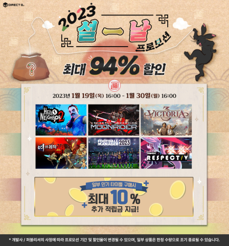 À̹ø ¼³³¯ ÇÁ·Î¸ð¼ÇÀº ´ÙÀÌ·ºÆ® °ÔÀÓÁî¿¡¼´Â 1¿ù 30ÀϱîÁö, H2¸ô¿¡¼´Â 2¿ù 17ÀϱîÁö ÁøÇàµÉ ¿¹Á¤À̸ç, ÇÁ·Î¸ð¼Ç ±â°£ Áß¿¡´Â ½ÅÀÛ ¹× Àα⠰ÔÀÓÀ» ÃÖ´ë 94% ÇÒÀÎµÈ °¡°Ý¿¡ ±¸¸ÅÇÒ ¼ö ÀÖ´Ù.
