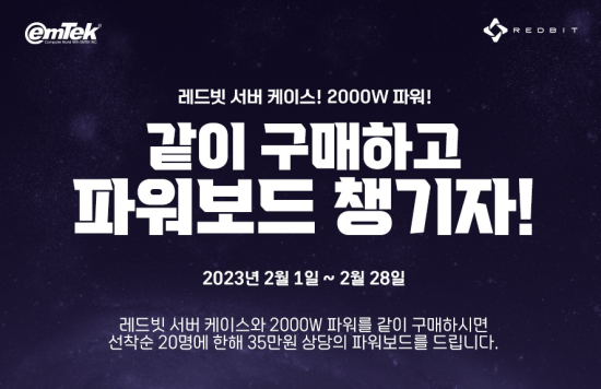 ¿¥ÅؾÆÀÌ¿£¾¾´Â °ß°íÇÑ ÀçÁú°ú ÃÖ»óÀÇ ÆÛÆ÷¸Õ½º¸¦ ÀÚ¶ûÇÏ´Â ·¹µåºø ¼­¹ö ÄÉÀ̽º ½Ã¸®Áî(¸ðµ¨¸í : MAXIMIZER, OPTIMIZER A TYPE, OPTIMIZER B TYPE) ¹× ·¹µåºø ¼­¹ö ÆÄ¿ö(¸ðµ¨¸í : CRPS-2000W-1U 80PLUS PLATINUM) Á¦Ç° °áÇÕ ±¸¸Å °í°´ ´ë»óÀ¸·Î 35¸¸¿ø »ó´çÀÇ ·¹µåºø ÆÄ¿ö º¸µå(¸ðµ¨¸í : CRPS BPL) ÇÑÁ¤ ¼ö·® ÁõÁ¤ À̺¥Æ®¸¦ ÀÌ¿¥ÅØ °ø½Ä ¼îÇθô ¡®¾ÆÀ̹ÙÀÌÄÄ¡¯ ¹× ½º¸¶Æ®½ºÅä¾î¸¦ ÅëÇØ 2023³â 2¿ù 1ÀÏ(¼ö)ºÎÅÍ 2¿ù 28ÀÏ(È­)±îÁö ÁøÇàÇÑ´Ù°í ¹àÇû´Ù.