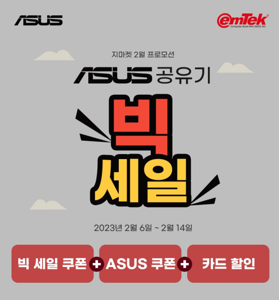 ÀÌ¿¥ÅؾÆÀÌ¿£¾¾(ÀÌÇÏ ÀÌ¿¥ÅØ)´Â 2023³â 2¿ù 6ÀÏ(¿ù)ºÎÅÍ 2¿ù 14ÀÏ(È)±îÁö, °ËÁõµÈ ¼º´É°ú °¨°¢ÀûÀÎ µðÀÚÀÎ, ³ôÀº »çÈÄ Áö¿ø ¼ºñ½ºÀÇ ASUS °øÀ¯±â¸¦ G¸¶ÄÏÀ» ÅëÇØ ÃÖ´ë 20% ÇÒÀεǴ ¡°´Ù°¡¿À´Â º½Ã¶ ÀÌ»ç ½ÃÁð, ASUS °øÀ¯±â¿Í ÇÔ²²!¡± Ư°¡ ÇÁ·Î¸ð¼ÇÀ» ÁøÇàÇÑ´Ù°í ¹àÇû´Ù.
