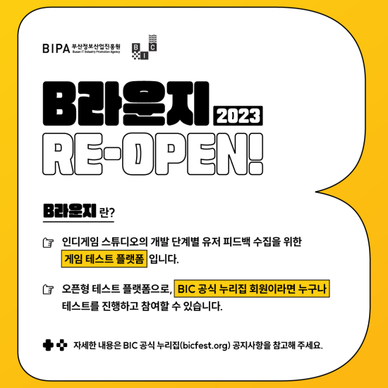 ºÎ»êÀεðÄ¿³ØÆ®Æä½ºÆ¼¹úÁ¶Á÷À§¿øÈ¸(ÀÌÇÏ BICÁ¶Á÷À§)´Â Ãâ½Ã ÀüÀÎ Àεð°ÔÀÓÀ» Ç÷¹ÀÌÇØº¸¸ç Çǵå¹éÀ» ³²±æ ¼ö ÀÖ´Â º£Å¸ Å×½ºÆ® Ç÷§Æû ¡®ºñ¶ó¿îÁö(B-lounge)¡¯¸¦ 15ÀÏ¿¡ Àç°¡µ¿ÇÑ´Ù°í ¹àÇû´Ù.