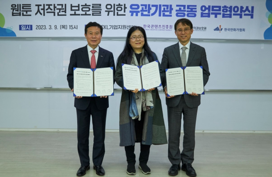 Çѱ¹ÄÜÅÙÃ÷ÁøÈï¿ø(ÀÌÇÏ ÄÜÁø¿ø)°ú Çѱ¹ÀúÀ۱Ǻ¸È£¿ø(ÀÌÇÏ º¸È£¿ø), Çѱ¹¸¸È°¡Çùȸ(ÀÌÇÏ ¸¸Çù)´Â À¥Å÷ ºÒ¹ý À¯Åë ±ÙÀý ¹× À¥Å÷ ÀúÀÛ±Ç º¸È£ ȯ°æ Á¶¼ºÀ» ¸ñÇ¥·Î¡®À¥Å÷ ÀúÀÛ±Ç º¸È£¸¦ À§ÇÑ À¯°ü±â°ü °øµ¿ ¾÷¹«Çù¾à¡¯À» ü°áÇß´Ù°í 10ÀÏ ¹àÇû´Ù. ÄÜÁø¿ø, ¸¸Çù, º¸È£¿øÀº ±âÁ¸ À¥Å÷ ÀúÀÛ±Ç º¸È£ Ä·ÆäÀÎ ¿î¿µ °æÇè°ú ÇÊ¿ä Á¤º¸ ¹× ÀÚ¿øÀ» ¿øÈ°ÇÏ°Ô °øÀ¯Çϱâ À§ÇÑ ¾÷¹« Çù¾àÀ» ü°áÇß´Ù. ¾ÕÀ¸·Î ¡ãÀ¥Å÷ ÀÌ¿ëÀÚ ´ë»ó ÀúÀÛ±Ç º¸È£ ÀÎ½Ä °³¼± Ä·ÆäÀÎ °øµ¿ ¿î¿µ ¡ãÀ¥Å÷ ÀúÀÛ±Ç º¸È£¸¦ À§ÇÑ ÀÚ·á °øÀ¯ ¹× °øµ¿ ÄÜÅÙÃ÷ Á¦ÀÛ¡¤¹èÆ÷¡¤È«º¸ ¡ã±¹³»¿Ü À¥Å÷ ºÒ¹ý ÀÌ¿ë ½ÇÅ ÆÄ¾ÇÀ» À§ÇÑ »óÈ£ Çù·Â ¡ãÀ¥Å÷ ÀúÀÛ±Ç »ê¾÷ ÁøÈï µî¿¡ ÈûÀ» ¸ðÀ» ¿¹Á¤ÀÌ´Ù.