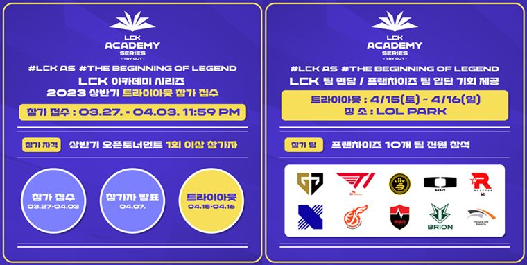 [KeSPA] 2023 LCK ¾ÆÄ«µ¥¹Ì ½Ã¸®Áî »ó¹Ý±â Æ®¶óÀ̾ƿô Âü°¡ÀÚ ¸ðÁý |