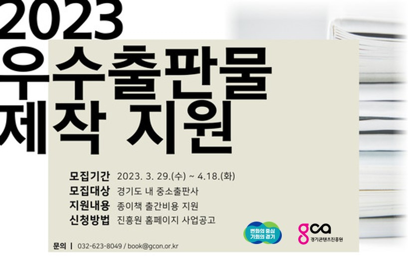 [°æÄÜÁø] Áß¼ÒÃâÆÇ»ç ´ë»ó ¡®2023 °æ±âµµ ¿ì¼öÃâÆÇ¹° Á¦ÀÛÁö¿ø »ç¾÷¡¯ °ø¸ð |