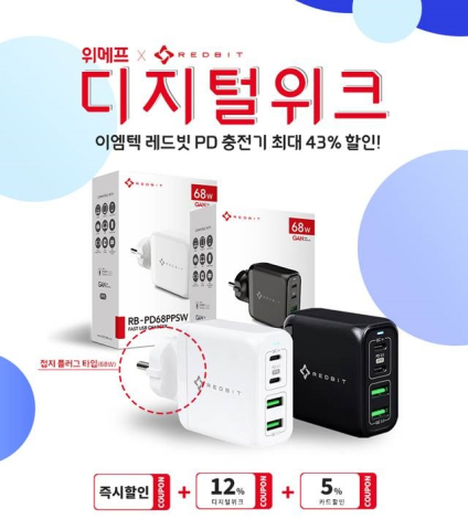 À§¸ÞÇÁ µðÁöÅÐÀ§Å© ÇÁ·Î¸ð¼Ç¿¡ Âü¿©ÇÏ´Â [·¹µåºø 120W Ãʰí¼Ó ¸ÖƼ PDÃæÀü±â]¿Í [·¹µåºø 68W °í¼Ó ¸ÖƼ PDÃæÀü±â]´Â Áï½Ã ÇÒÀΰú µðÁöÅÐÀ§Å© 12% ÄíÆù, Ä«µåÇÒÀÎ 5% ÄíÆùÀ» µ¿½Ã¿¡ Àû¿ëÇÒ ¼ö ÀÖ¾î [·¹µåºø 68W °í¼Ó ¸ÖƼ PD ÃæÀü±â]´Â 27,590¿ø, [·¹µåºø 120W Ãʰí¼Ó ¸ÖƼ PD ÃæÀü±â]´Â 45,150¿ø¿¡ ±¸¸ÅÇÒ ¼ö ÀÖ´Ù.