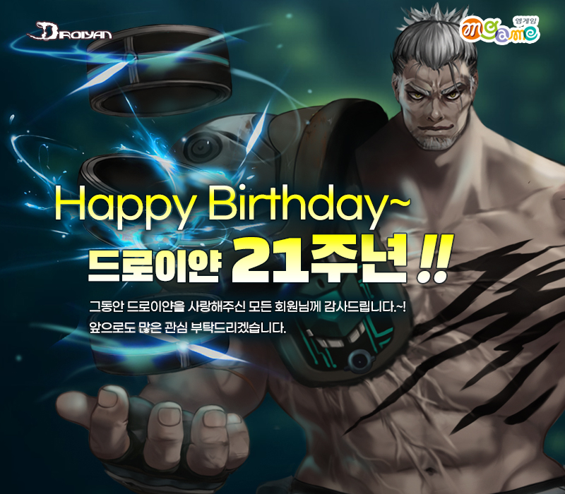 2002³â 4¿ù Á¤½Ä ¼ºñ½º¸¦ ½ÃÀÛÇÑ SF MMORPG(´ÙÁßÁ¢¼Ó¿ªÇÒ¼öÇà°ÔÀÓ) ¡®µå·ÎÀ̾ᡯÀº ¿À´Â 6¿ù 29ÀϱîÁö ¼ºñ½º 21Áֳ⠱â³ä À̺¥Æ®¸¦ ÁøÇàÇÑ´Ù. À̺¥Æ® ±â°£ µ¿¾È °ÔÀÓ Á¢¼Ó 1ȸ, ¸ó½ºÅÍ »ç³É, PVP Âü¿© µî ƯÁ¤ ¹Ì¼ÇÀ» ¿Ï·áÇÏ°í ¹ÞÀº Ç÷¹ÀÌ ÄÚÀΰú ¸ÅÀÏ 1ȸ ·ç³ª NPC¿¡°Ô ¹ÞÀº 21Áֳ⠻ýÀÏ ¾¾¾ÑÀ¸·Î º¯È¯½ÃŲ 21Áֳ⠻ýÀÏ ²ÉÀ¸·Î ÇÁ¸®¹Ì¾ö ÀÌ¿ë±Ç°ú Àåºñ ¾ÆÀÌÅÛ°ú °í±Þ ÆÄ¿ö ¼ö¸® ŰƮ µî ´Ù¾çÇÑ °ÔÀÓ¾ÆÀÌÅÛÀ¸·Î ±³È¯ÇÒ ¼ö ÀÖ´Ù.
