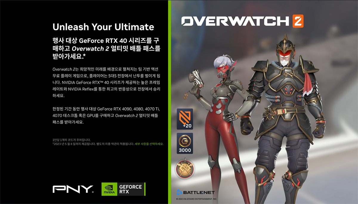 ¡®PNY Technology (ÀÌÇÏ PNY)¡¯ÀÇ ±¹³» °ø½Ä ¼öÀÔ¿øÀÌÀÚ °ÔÀÌ¹Ö ±â±â µðÀÚÀΡ¤°³¹ß¡¤Á¦Á¶ Àü¹®±â¾÷ Çѹ̸¶ÀÌÅ©·Î´Ð½º(´ëÇ¥: °­Çö¹Î, ÀÌÇÏ ¸¶ÀÌÅ©·Î´Ð½º)´Â PNY ÁöÆ÷½º RTX¢â 40 ½Ã¸®Áî ±×·¡ÇÈÄ«µå ±¸¸ÅÀÚ¸¦ ´ë»óÀ¸·Î ¡®¿À¹ö¿öÄ¡ 2 ¾óƼ¹Ô ¹èƲ ÆÐ½º(Overwatch 2 Ultimate Battle Pass)¡¯¸¦ ÁõÁ¤ÇÏ´Â ÇÁ·Î¸ð¼ÇÀ» ÁøÇàÇÑ´Ù.