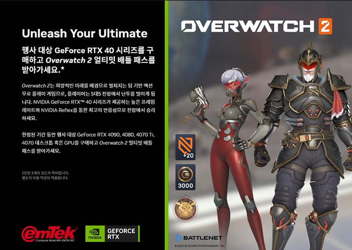 Á¦   ¸ñ : [ÀÌ¿¥ÅØ] RTX 40 ½Ã¸®Áî ±¸¸Å ½Ã Overwatch 2 ¾óƼ¹Ô ¹èƲ ÆÐ½º ÇÁ·Î¸ð¼Ç ÁøÇà