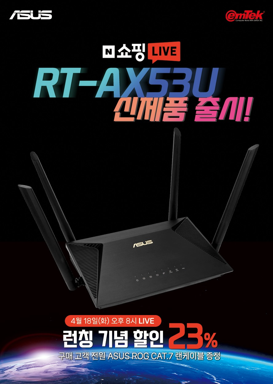 [ÀÌ¿¥ÅØ] ASUS RT-AX53U °øÀ¯±â Ãâ½Ã ±â³ä ¶óÀÌºê Æ¯°¡ ÁøÇà |