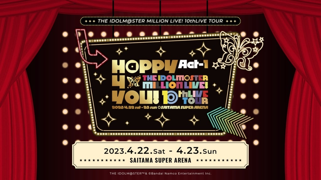 ÁÖ½Äȸ»ç ¹Ý´ÙÀÌ ³²ÄÚ ¿£ÅÍÅ×ÀÎ¸ÕÆ®´Â "THE IDOLM@STER MILLION LIVE! 10thLIVE TOUR Act-1 H@PPY 4 YOU!(¾ÆÀ̵¹¸¶½ºÅÍ ¹Ð¸®¾ð ¶óÀ̺ê! 10th ¶óÀ̺ê Åõ¾î Act-1 ÇØÇÇÆ÷À¯)"¸¦ 2023³â 4¿ù 22ÀÏ(Åä), 23ÀÏ(ÀÏ) ÀÌÆ²°£ »çÀÌŸ¸¶ ½´ÆÛ ¾Æ·¹³ª(ÀϺ» »çÀÌŸ¸¶Çö »çÀÌŸ¸¶½Ã)¿¡¼ °³ÃÖÇÑ´Ù.
