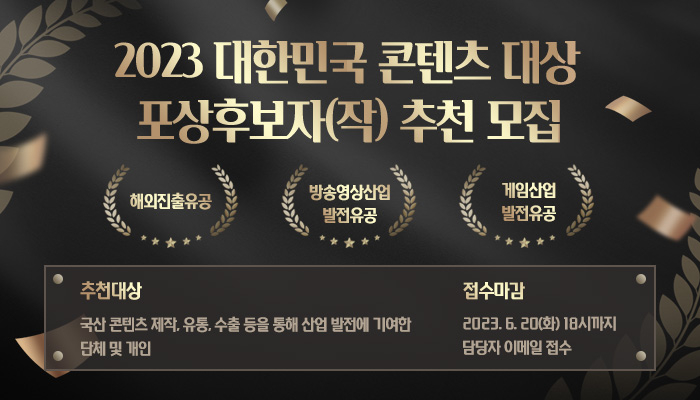 [ÄÜÁø¿ø] 2023³â ´ëÇѹα¹ ÄÜÅÙÃ÷ ´ë»ó Æ÷»ó Èĺ¸ÀÚ Ãßõ Á¢¼ö |