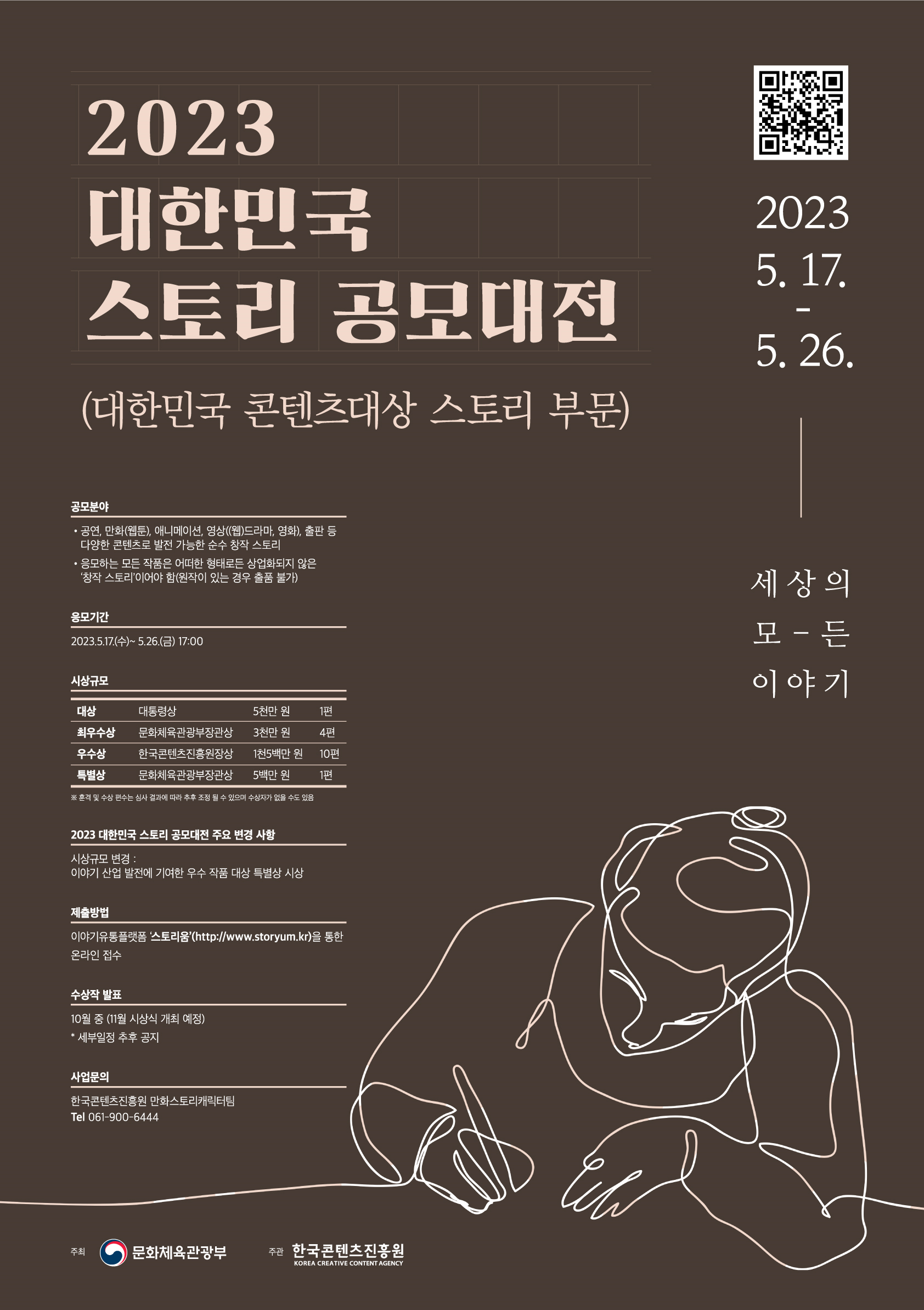¹®ÈüÀ°°ü±¤ºÎ¿Í Çѱ¹ÄÜÅÙÃ÷ÁøÈï¿ø(ÀÌÇÏ ÄÜÁø¿ø)Àº <2023 ´ëÇѹα¹ ½ºÅ丮 °ø¸ð´ëÀü>(´ëÇѹα¹ ÄÜÅÙÃ÷´ë»ó – ½ºÅ丮 ºÎ¹®) °ø¸ð Á¢¼ö¸¦ ³»´Þ 5¿ù 17ÀϺÎÅÍ 26ÀϱîÁö ¿Â¶óÀÎÀ¸·Î ÁøÇàÇÑ´Ù.