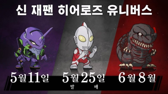 ¡®½Å °í¸±¶ó¡¯, ¡®EVANGELION:3.0+1.0 THRICE UPON A TIME¡¯, ¡¯½Å ¿ïÆ®¶ó¸Ç¡¯, ¡¯½Å °¡¸é¶óÀÌ´õ¡¯. ÀϺ»À» ´ëÇ¥ÇÏ´Â ¡®È÷¾î·Î¡¯ ³× ÀÛǰÀÌ Äݶ󺸷¹À̼ÇÀ» ÇÑ ±âÀûÀÇ ÇÁ·ÎÁ§Æ® ¡®½Å ÀçÆÒ È÷¾î·ÎÁî À¯´Ï¹ö½º(S.J.H.U.)¡¯°¡ ½Ãµ¿À» °É¾ú´Ù. ¡°¡®½Å¡¯À¸·Î ½ÃÀÛÇÏ´Â ÀÛǰ¡±À̶ó´Â ¿¬°á°í¸®¸¦ ÅëÇØ, ÀϺ»À» ´ëÇ¥ÇÏ´Â ¡®È÷¾î·Î¡¯ 4ÀÛǰÀÇ Äݶ󺸷¹À̼ÇÀÌ ½ÇÇöµÈ °ÍÀÌ´Ù.