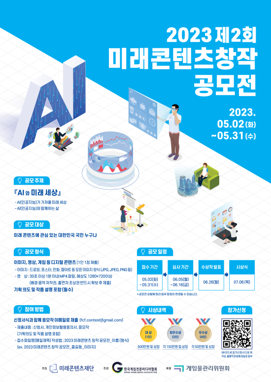 Àç´Ü¹ýÀÎ ¹Ì·¡ÄÜÅÙÃ÷Àç´ÜÀÌ ÁÖÃÖÇϰí Çѱ¹°ÔÀÓÀü¹®¹Ìµð¾îÇùȸ°¡ ÁÖ°ü, °ÔÀÓ¹°°ü¸®À§¿øÈ¸°¡ ÈÄ¿øÇÏ´Â ¡®2023 ¹Ì·¡ÄÜÅÙÃ÷ âÀÛ °ø¸ðÀü¡¯ÀÌ 5¿ù 2ÀÏ Á¢¼ö¸¦ ½ÃÀÛÇÑ´Ù.