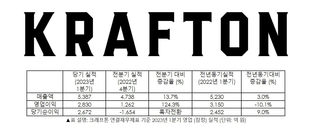 Å©·¡ÇÁÅæÀº 2023³â 1ºÐ±â, Çѱ¹Ã¤Åñ¹Á¦È¸°è±âÁØ(K-IFRS)À¸·Î ¸ÅÃâ 5,387¾ï ¿ø, ¿µ¾÷ÀÌÀÍ 2,830¾ï ¿ø, ´ç±â¼øÀÌÀÍ 2,672¾ï ¿øÀÇ ¼º°ú¸¦ ´Þ¼ºÇß´Ù. 1ºÐ±â ¿¬°á ¸ÅÃâ¾×Àº ÀüºÐ±â ´ëºñ 14%, Àü³âµ¿±â´ëºñ 3% ¼ºÀåÇØ ¿ª´ë ÃÖ´ë ºÐ±â ¸ÅÃâ¾×À» °æ½ÅÇß´Ù. ¿µ¾÷ÀÌÀÍÀº ÀüºÐ±â ´ëºñ 124% ¼ºÀåÇØ 53%ÀÇ ¿µ¾÷ÀÌÀÍ·üÀ» ±â·ÏÇß´Ù. ƯÈ÷ ¿µ¾÷ÀÌÀÍÀÇ Áֽ帻óºñ¿ëÀ» Á¦¿ÜÇÒ °æ¿ì, 1ºÐ±â ¿µ¾÷ÀÌÀÍÀº 2,930¾ï¿øÀ¸·Î Àü³â µ¿±â 12% Áõ°¡ÇÑ ¼öÄ¡´Ù. ´ç±â¼øÀÌÀÍÀº ÀüºÐ±â ´ëºñ ÈæÀÚÀüȯ Çϸç, 50%ÀÇ ´ç±â¼øÀÌÀÍ·üÀ» ±â·ÏÇß´Ù.