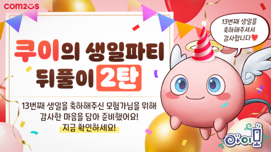 ÄÄÅõ½º°¡ ÀÚ»ç Àå¼ö ¸ð¹ÙÀÏ MMORPG '¾ÆÀ̸ð'ÀÇ Ãâ½Ã 13ÁÖ³âÀ» ±â³äÇÑ µÎ ¹øÂ° À̺¥Æ®¸¦ ÁøÇàÇÑ´Ù.