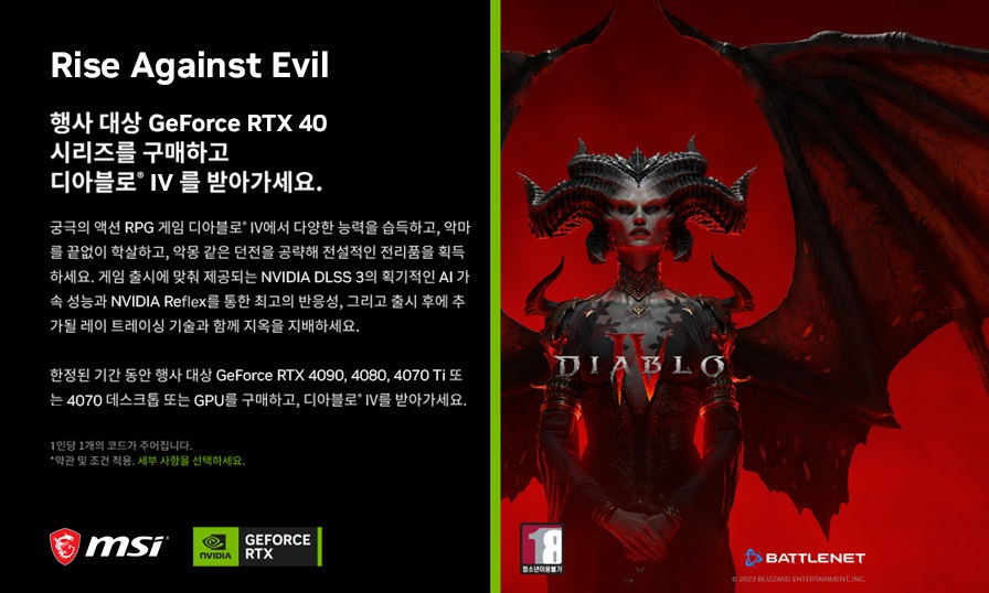 [MSI] ÁöÆ÷½º RTX 40 ½Ã¸®Áî ±¸¸Å½Ã 'µð¾Æºí·Î4' ÁõÁ¤ Çà»ç ÁøÇà |