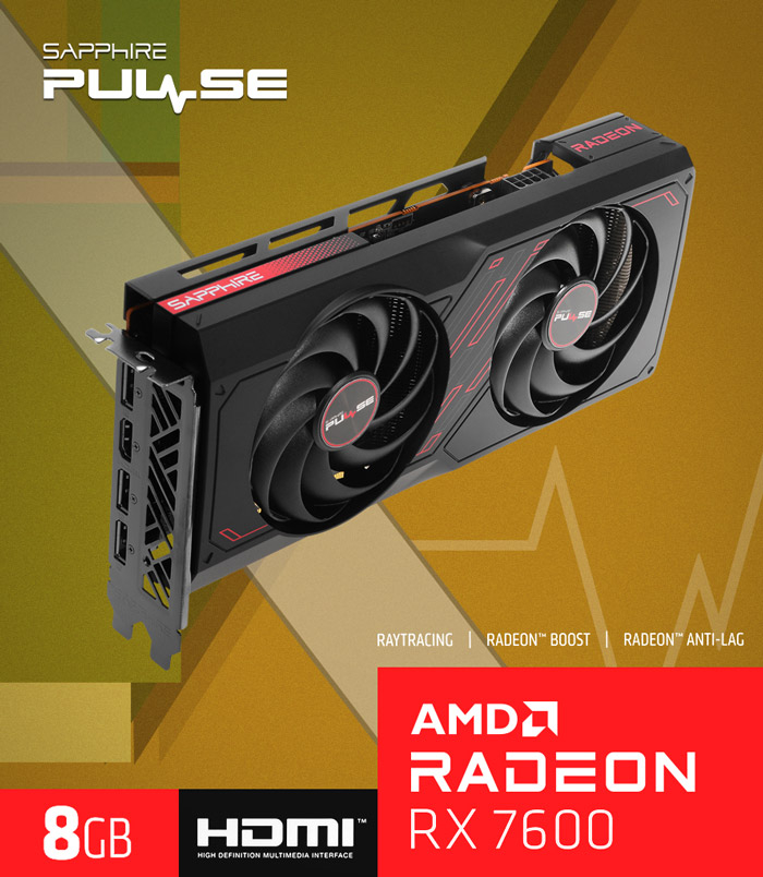 SAPPHIRE ¶óµ¥¿Â RX 7600 PULSE OC D6 8GB´Â TSMCÀÇ 6nm °øÁ¤°ú RDNA3 ¾ÆÅ°ÅØÃ³¸¦ »ç¿ëÇÑ AMDÀÇ ¸ÞÀνºÆ®¸²ÀÇ ±×·¡ÇÈÄ«µå Á¦Ç°±ºÀ¸·Î½á, ±âÁ¸ RNDA ¾ÆÅ°ÅØÃ³¿Í ºñ±³ÇÏ¿© ÀÎÇÇ´ÏÆ¼ ij½Ã¿Í ·¹ÀÌÆ®·¹ÀÌ½Ì µîÀÇ Ãֽбâ¼úÀ» ¾÷±×·¹À̵åÇÏ¿© ±×·¡ÇÈÀûÀ¸·Î Áøº¸Çß´Ù. ±×¿¡ SAPPHIREÀÇ ±â¼ú·ÂÀ¸·Î ºÎ½ºÆ® Ŭ·°À» 2,754MHz±îÁö ²ø¾î ¿Ã¸° ¸ðµ¨ÀÌ´Ù.