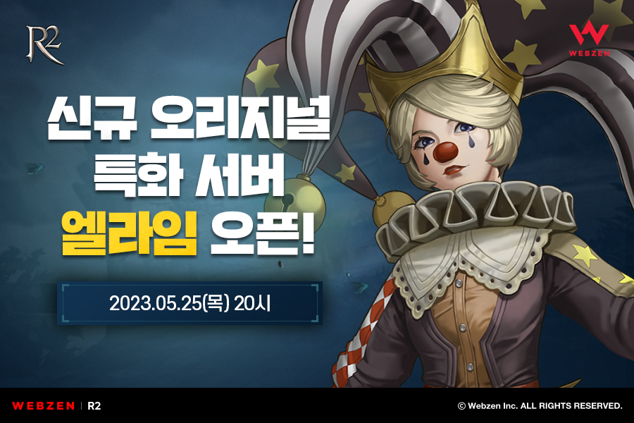 À¥Á¨ÀÌ ÀÚ»çÀÇ ´ëÇ¥ PC MMORPG 'R2(Reign of Revolution)¡¯¿¡¼ ½Å±Ô ¿À¸®Áö³Î Æ¯È ¼¹ö¸¦ ¿ÀÇÂÇß´Ù. À¥Á¨Àº ¾îÁ¦(5¿ù 25ÀÏ) 20½Ã¿¡ ARS ÀüÈ ÀÎÁõÀ¸·Î ÄèÀûÇÑ ½Å±Ô ¼¹ö '¿¤¶óÀÓ'À» ¿°í ±â³ä À̺¥Æ® 6Á¾À» ½Ç½ÃÇÑ´Ù.