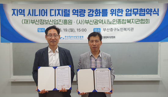 ºÎ»êÁ¤º¸»ê¾÷ÁøÈï¿ø(ÀÌÇÏ ÁøÈï¿ø)Àº ºÎ»ê±¤¿ª½Ã³ëÀÎÁ¾ÇÕº¹Áö°üÇùȸ(ÀÌÇÏ Çùȸ)Àº Áö³ 6¿ù 19ÀÏ ºÎ»ê Áö¿ª ½Ã´Ï¾îÀÇ µðÁöÅÐ ¿ª·® °È¿Í Á¤º¸ °ÝÂ÷ ÇØ¼Ò¸¦ À§ÇÑ ¾÷¹«Çù¾à(MOU)À» ü°áÇß´Ù°í ¹àÇû´Ù.