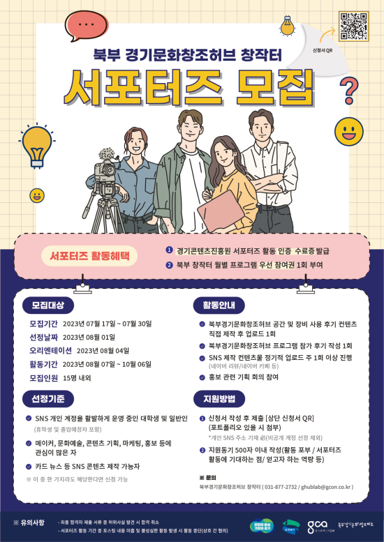 °æ±âµµ¿Í ÀÇÁ¤ºÎ½Ã°¡ ¼³¸³ÇÏ°í °æ±âÄÜÅÙÃ÷ÁøÈï¿øÀÌ ¿î¿µÇÏ´Â ºÏºÎ °æ±â¹®ÈâÁ¶Çãºê¿¡¼ ¡®Ã¢ÀÛÅÍ SNS ¼Æ÷ÅÍÁ 15¸íÀ» 7¿ù 30ÀϱîÁö ¸ðÁýÇÑ´Ù.