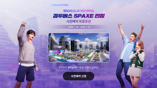 ÄÄÅõ½ºÀÇ ¸ÞŸ¹ö½º ÀÚȸ»ç ÄÄÅõ¹ö½º°¡ ¿ÃÀοø ¸ÞŸ¹ö½º ¡®ÄÄÅõ¹ö½º(Com2Verse)¡¯ÀÇ Ã¹ ¹øÂ° °ø°£ÀÎ ¡®½ºÆäÀ̽º(SPAXE)¡¯ÀÇ °ø½Ä ·ÐĪÀ» ¾ÕµÎ°í »çÀü ¿¹¾àÀ» ½Ç½ÃÇÑ´Ù.