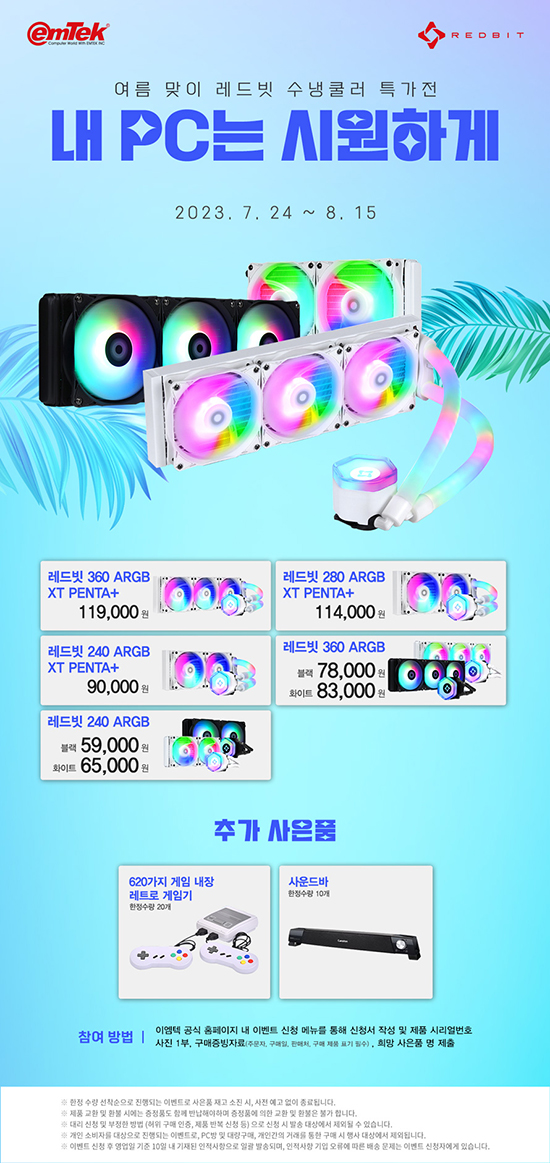 ÀÌ¿¥ÅؾÆÀÌ¿£¾¾´Â 2023³â 7¿ù 24ÀÏ(¿ù)ºÎÅÍ 8¿ù 15ÀÏ(È)±îÁö ¿©¸§ ¸ÂÀÌ ·¹µåºø ¼ö³ÃÄ𷯠Ư°¡Àü°ú ÀÌ¿¥ÅØ ·¹µåºø ¼ö³ÃÄð·¯ Á¦Ç° ±¸¸Å °í°´ ´ë»óÀ¸·Î ¢ßÀÌ¿¥ÅؾÆÀÌ¿£¾¾ °ø½Ä ȨÆäÀÌÁö¸¦ ÅëÇØ ½Åû¼ ÀÛ¼º ½Ã, 620°¡Áö °ÔÀÓÀÌ ³»ÀåµÈ ·¹Æ®·Î °ÔÀÓ±â¿Í »ç¿îµå¹Ù¸¦ Åà 1·Î »çÀºÇ°À» ÇÑÁ¤¼ö·® ÁõÁ¤ÇÏ´Â Çà»ç¸¦ ÁøÇàÇÑ´Ù ¹àÇû´Ù.