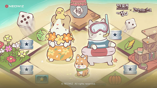 ÇǸÁ Æ÷Ä¿¿Í ÇǸÁ ¼¸´Ù¿¡¼ ÁøÇàµÇ´Â ù ¹øÂ° Çù¾÷À¸·Î, °ÔÀÓ ³»¿¡¼ °í¾çÀÌ¿Í ½ºÇÁÀÇ ±Í¿©¿î ij¸¯Å͵éÀ» ¸¸³¯ ¼ö ÀÖ´Ù. °ÔÀÓ Á¢¼Ó ÈÄ 10ȸ ÀÌ»ó °ÔÀÓÀ» Ç÷¹ÀÌÇϸé 'ÁÖ»çÀ§'¸¦ ¾ò°Ô µÇ°í, À̸¦ ±¼·Á ¸ÊÀ» À̵¿ÇÏ¸é °ÔÀÓ ÀçÈ·Î »ç¿ë °¡´ÉÇÑ ¡®°ñµå¡¯¿Í ¹Ì´Ï °ÔÀÓ¿¡ »ç¿ëµÇ´Â ¡®Æ¼ÄÏ¡¯ µîÀÇ ¾ÆÀÌÅÛÀ» ¹ÞÀ» ¼ö ÀÖ´Ù.