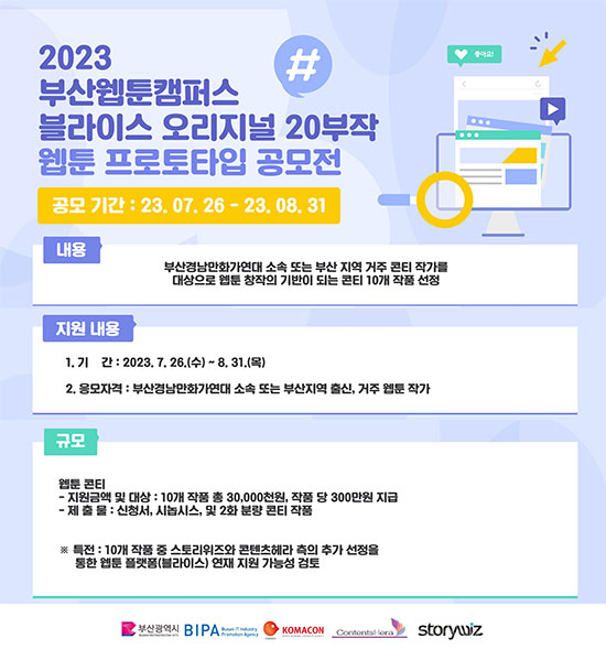 7¿ù 26ÀϺÎÅÍ 8¿ù 31ÀϱîÁö À¥Å÷ ÄÜÆ¼¸¦ ¸ðÁýÇϴ¡¸ºí¶óÀ̽º ¿À¸®Áö³Î 20ºÎÀÛ À¥Å÷ ÇÁ·ÎÅäŸÀÔ °ø¸ðÀü¡¹Àº 10°³ ÀÛǰÀ» ¼±Á¤ÇØ »ó±ÝÀ» Áö±ÞÇϸç, ¼±Á¤µÈ 10°³ ÀÛǰ Áß º°µµ ¼±Á¤ ÈÄ, 20ºÎÀÛ »çÀü Á¦ÀÛµÇ¾î ½ºÅ丮À§ÁîÀÇ À¥Å÷ Ç÷§Æû ºí¶óÀ̽º¿¡ ¿¬ÀçµÈ´Ù.