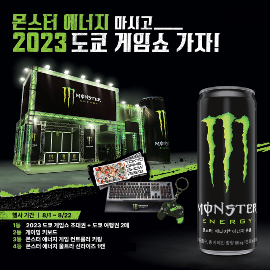 ¸ó½ºÅÍ ¿¡³ÊÁö(Monster Energy)°¡ ¿À´Â 22ÀϱîÁö ¼¼ºìÀÏ·¹ºì ¸ÅÀå¿¡¼ Á¦Ç°À» ±¸¸ÅÇÑ °í°´À» ´ë»óÀ¸·Î ¡®2023 µµÄì °ÔÀӼ ƼÄÏ ÁõÁ¤ À̺¥Æ®¸¦ ½Ç½ÃÇÑ´Ù.