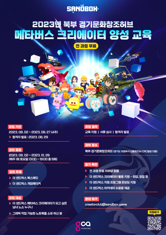 °æ±âÄÜÅÙÃ÷ÁøÈï¿ø(ÀÌÇÏ °æÄÜÁø)Àº ±Û·Î¹ú ¸ÞŸ¹ö½º Ç÷§Æû ¡®´õ »÷µå¹Ú½º(The Sandbox)¡¯¿Í ¸ÞŸ¹ö½º Àü¹® Àη ¾ç¼ºÀ» À§ÇÑ ¡®2023³â ºÏºÎ°æ±â¹®ÈâÁ¶Çãºê: ¸ÞŸ¹ö½º Å©¸®¿¡ÀÌÅÍ ¾ç¼º ±³À°¡¯ÀÇ ¼ö°»ýÀ» ¸ðÁýÇÑ´Ù.