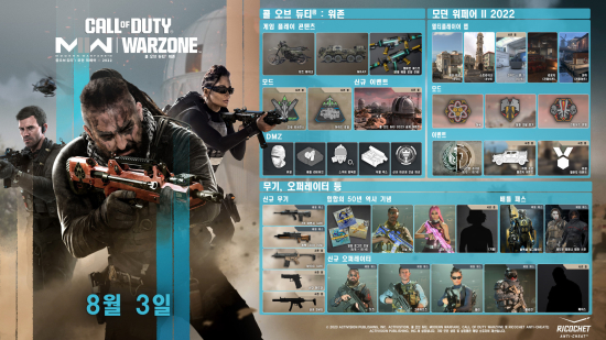 ÄÝ ¿Àºê µàƼ: ¿öÁ¸(Call of Duty¢ç: Warzone¢â, ÀÌÇÏ ¿öÁ¸) ¹× ÄÝ ¿Àºê µàƼ: ¸ð´ø ¿öÆä¾î II 2022(Call of Duty¢ç: Modern Warfare¢ç II, ÀÌÇÏ ¸ð´ø ¿öÆä¾î II 2022)ÀÇ ½ÃÁð 05(Season 05)°¡ ¿À´Ã 8¿ù 3ÀÏ(ÀÌÇÏ Çѱ¹ ½Ã°£ ±âÁØ) ½ÃÀ۵ȴÙ. Âü½ÅÇÑ ¹ÝÀüÀÌ ´ã±ä ½ºÅ丮¸¦ Áß½ÉÀ¸·Î, ¸ð´ø ¿öÆä¾î II 2022¿Í ¿öÁ¸À» ä¿ì´Â ÀλóÀûÀ̸鼵µ ¹æ´ëÇÑ ¹«·á ÄÜÅÙÃ÷¸¦ ÅëÇØ, ÀüÀåÀ» ´Þ¸®´Â Ç÷¹ÀÌ¾î ¿ä¿øµéÀÇ Çຸ¿¡ ¹ÚÁø°¨°ú Áñ°Å¿òÀ» ´õÇÑ´Ù.