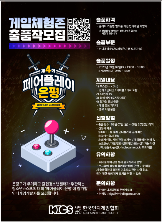»ç´Ü¹ýÀÎ Çѱ¹Àεð°ÔÀÓÇùȸ°¡ 9¿ù 9ÀÏ(Åä)¿¡ ÁøÇàµÇ´Â 2023³â Á¦4ȸ ÀºÆò±¸ û¼Ò³â e½ºÆ÷Ã÷´ëȸ ¡®Æä¾îÇà ·¹ÀÌ ÀºÆò¡® °á½ÂÀü Æä½ºÆ¼¹ú Çà»ç(ÀÌÇÏ, Æä¾îÇ÷¹ÀÌ ÀºÆò)¿¡ Âü°¡ÇÒ Àεð°ÔÀÓ°³¹ßÀÚ¸¦ ¸ðÁýÇÑ´Ù°í ¹àÇû´Ù.
