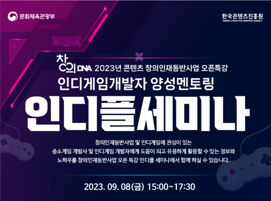¹®ÈüÀ°°ü±¤ºÎ, Çѱ¹ÄÜÅÙÃ÷ÁøÈï¿øÀÌ ÁÖÃÖÇÏ°í ¼°´ëÇб³»êÇÐÇù·Â´Ü, Çѱ¹Àεð°ÔÀÓÇùȸ°¡ °øµ¿ ÁÖ°üÇÏ´Â ¡®2023 ÄÜÅÙÃ÷âÀÇÀÎÀ絿¹Ý»ç¾÷ ¿ÀÇÂÆ¯°¡®ÀÌ ¿À´Â 9¿ù 8ÀÏ(±Ý¿äÀÏ) , Çѱ¹ÄÜÅÙÃ÷ÁøÈï¿ø ÄÜÅÙÃ÷ÀÎÀçÄ·ÆÛ½º¿¡¼ ¿Â•¿ÀÇÁ¶óÀÎ Çà»ç·Î ÁøÇàµÈ´Ù.