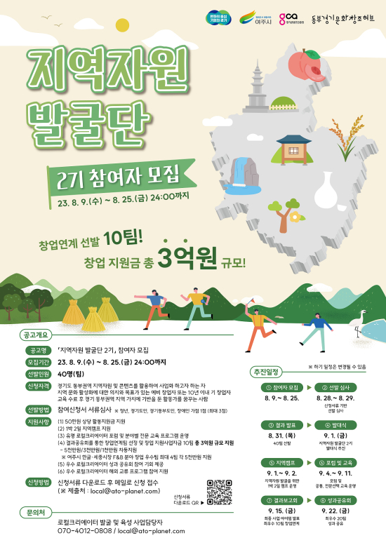 °æ±âÄÜÅÙÃ÷ÁøÈï¿ø(ÀÌÇÏ °æÄÜÁø) µ¿ºÎ°æ±â¹®ÈâÁ¶Çãºê¿¡¼ °æ±â µ¿ºÎ±Ç¿ªÀÇ Áö¿ªÀÚ¿øÀ» Ȱ¿ëÇÑ Ã¢¾÷À» Áö¿øÇÏ´Â ¡¸Áö¿ªÀÚ¿ø ¹ß±¼´Ü 2±â¡¹ Âü¿©ÀÚ 40ÆÀÀ» ¿À´Â 8¿ù 25ÀϱîÁö ¸ðÁýÇÑ´Ù.