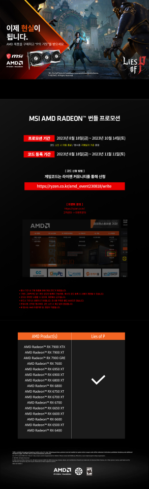 ¡®MSI ¶óµ¥¿Â RX 6950 XT / 6900 XT / 6800 XT / 6800 / 6750 XT / 6700 XT / 6700 / 6650XT / 6600 XT / 6600¡¯ ±×·¡ÇÈÄ«µå¸¦ 2023³â 8¿ù 18ÀϺÎÅÍ 10¿ù 14ÀϱîÁö ±¸¸ÅÇÏ´Â °í°´Àº °ÔÀÓ Äڵ带 ½ÅûÇÒ ¼ö ÀÖ´Ù.