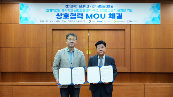 °æ±âÄÜÅÙÃ÷ÁøÈï¿ø(ÀÌÇÏ °æÄÜÁø)Àº °æ±â°úÇбâ¼ú´ëÇб³(ÃÑÀå Çã³²¿ë, ÀÌÇÏ °æ±â°úÇбâ¼ú´ë)¿Í °æ±â°úÇбâ¼ú´ë ´ëȸÀǽǿ¡¼ °æ±âµµ ÄÜÅÙÃ÷»ê¾÷ Àü¹®Àη ¾ç¼º ¹× Á¶±âÃë¾÷ ¿¬°è Áö¿ø µî ÀÏÀÚ¸® âÃâ »ç¾÷À» °øµ¿À¸·Î ÃßÁøÇϱâ À§ÇÑ ¾÷¹«Çù¾à ü°á½ÄÀ» ÁøÇàÇß´Ù°í 31ÀÏ ¹àÇû´Ù.