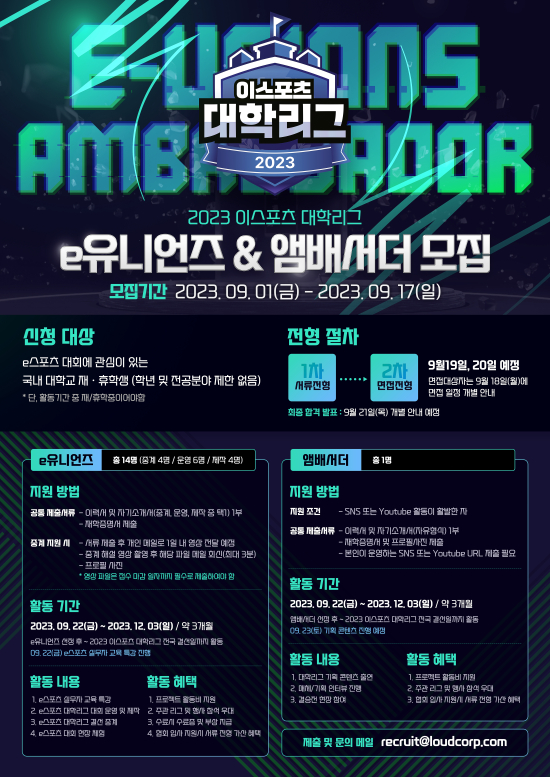 [KeSPA] 2023 À̽ºÆ÷Ã÷ ´ëÇи®±× eÀ¯´Ï¾ðÁî ¹× ¾Ú¹è¼´õ ¸ðÁý |